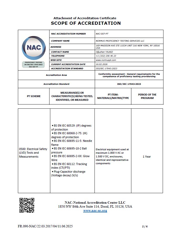 Normus Proficiency Testing Services offers field-applied, quality and conformity assessment and PT services for over 750 electrical tests across 112 different product types.